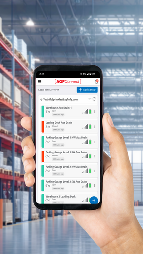 AGFConnect™ provides real‑time monitoring of auxiliary drains in dry and preaction fire sprinkler systems, helping facility managers and contractors identify condensation buildup before freezing conditions can cause damage. Using a combination of wireless sensors, a cellular gateway, and a cloud‑based monitoring platform, AGFConnect delivers timely alerts so auxiliary drains can be emptied when needed. This proactive approach helps reduce risk, minimize labor, and prevent system downtime, without requiring integration with a fire alarm panel or building management system.